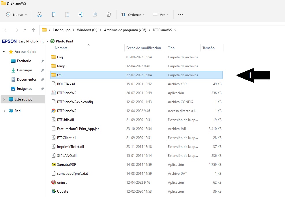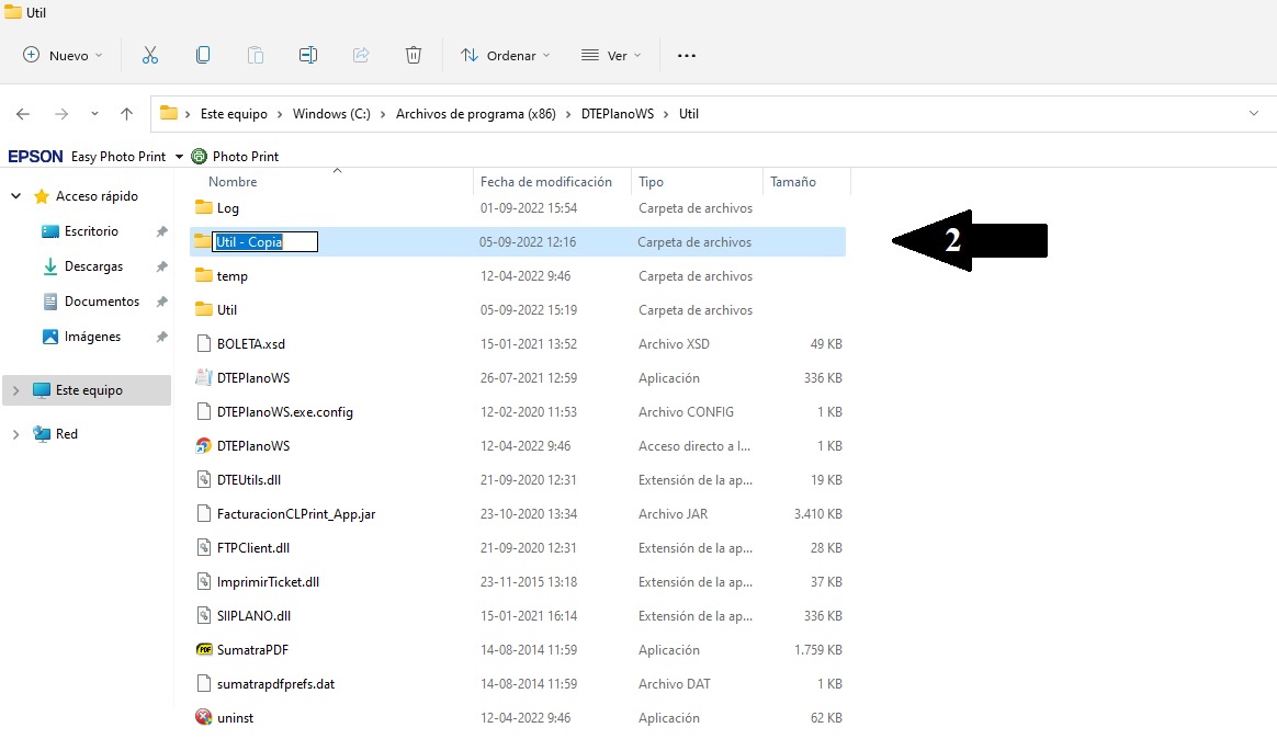 2) Dentro de esta existe una carpeta llamada "Util", lo que debe ser copiada esta carpeta y pegada dentro de la misma ruta ( c:\Archivos de programa (x86)\DTEPlanoWS). Una vez copiada cambiar el nombre por la de su sistema o empresa (Ejemplo: Sistema2).