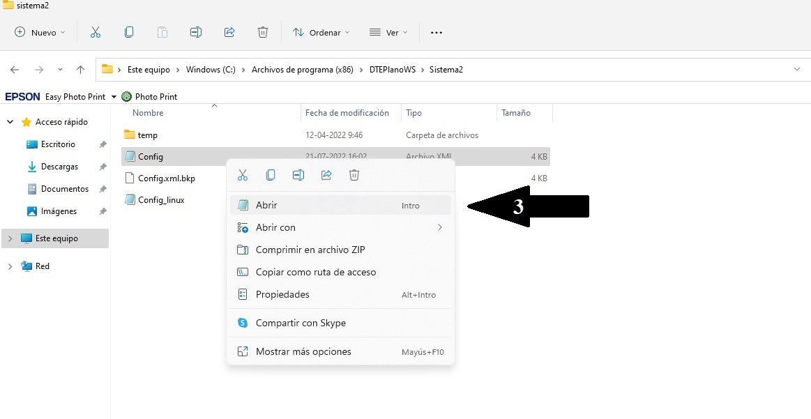 3) Dentro ya de su nueva carpeta, dirigirse al archivo llamado Config. (documento xml) dar clic con el botón derecho para "editar".