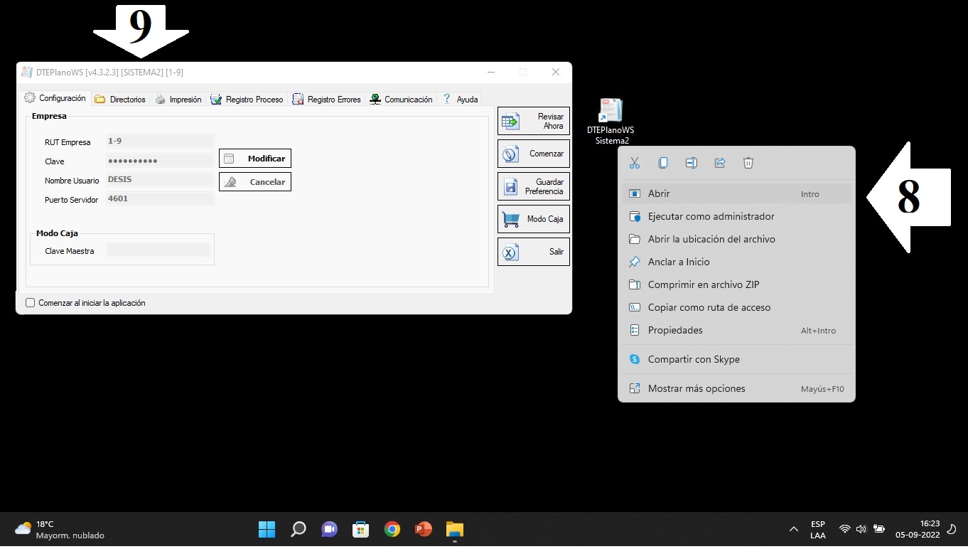 7) Una vez ya configurado el puerto servidor del nuevo sistema en la carpeta DTEPlanoWS, es posible abrir un distinto DTEPlano y realizar las configuraciones correspondientes.